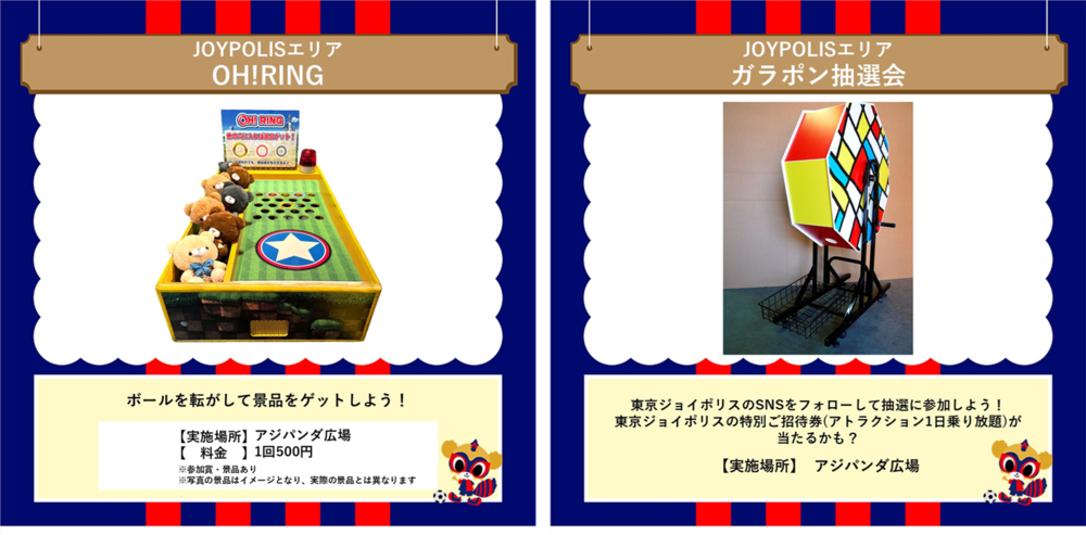 ※아오아카 파크 supported by JOYPOLIS는 입장 전(개문 전)부터 이용할 수 있습니다. 입장 후에도 재입장 게이트에서 이용 가능합니다.