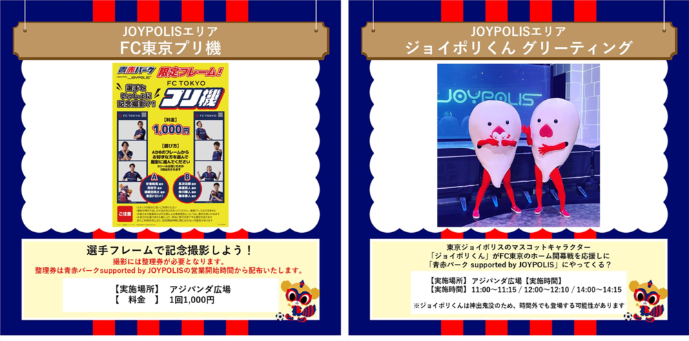 2월 22일(토) 2025 메이지 야스다 J1리그 제2절 vs FC 마치다 젤비아(15:00 킥오프/아지노모토 스타디움)의 아오아카 파크 supported by JOYPOLIS 어트랙션 정보를 알려드립니다.
