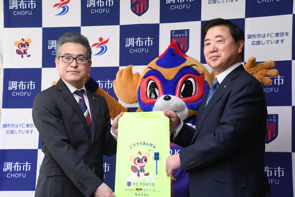 오늘 24일(월) 조후 시청에서 증정식이 개최되었으며, 조후 시에서는 나가토모 시장, FC 도쿄에서는 카와기시 사장과 팀 마스코트 도쿄 도롱파가 참석하였습니다.