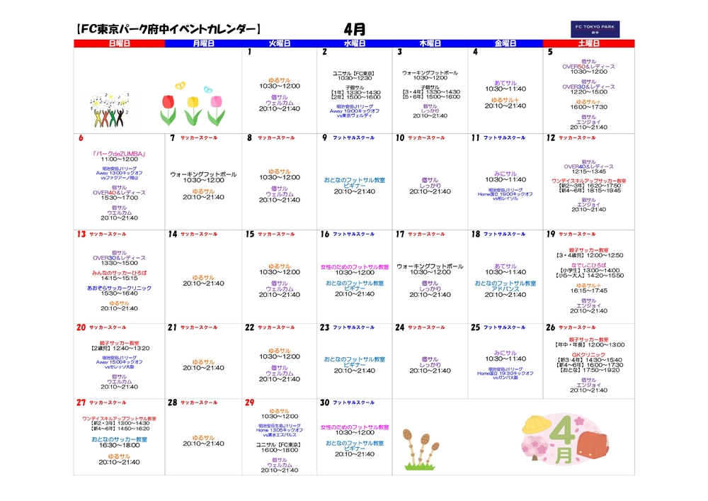 FC 도쿄 파크 후추에서는 4월에 개최되는 FC 도쿄 보급부 코치의 지도를 받을 수 있는 이벤트 참가자를 모집하고 있습니다.