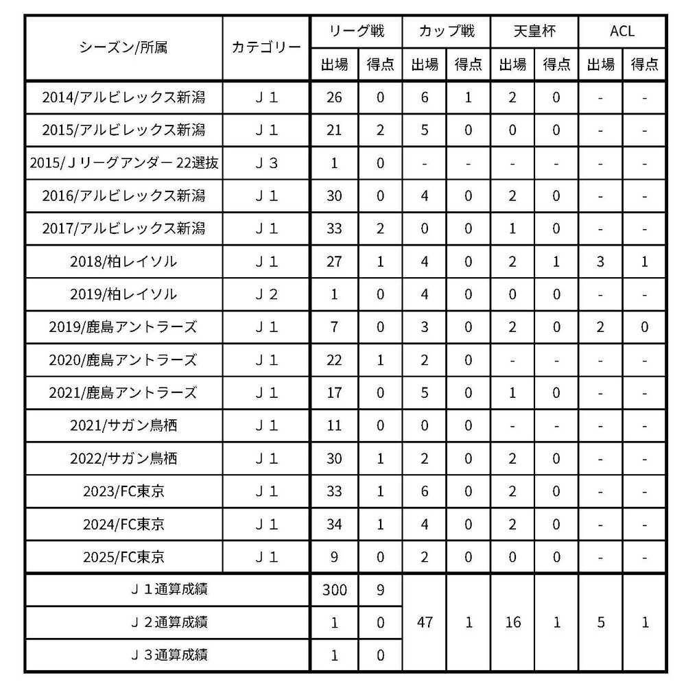 “도쿄뿐만 아니라, 알비렉스 니가타, 가시와 레이솔, 가시마 앤틀러스, 사간 도스라는 지금까지 소속되어 있던 클럽에서 출전을 쌓아온 덕분에 이 기록을 달성할 수 있었습니다. 지금까지 관계해 주신 모든 분들께 감사드립니다. 300경기 출전이라는 이정표가 되는 경기를 도쿄에서 맞이할 수 있어 기쁩니다.”