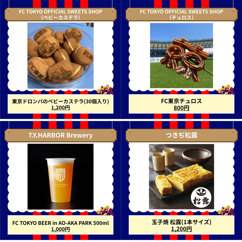 5월 25일(일) 2025 메이지 야스다 J1리그 제18절 vs 산프레체 히로시마 (15:00 킥오프/국립경기장)에서, 아오아카 파크 supported by JOYPOLIS에서 판매하는 음식 및 음료 정보를 알려드립니다.