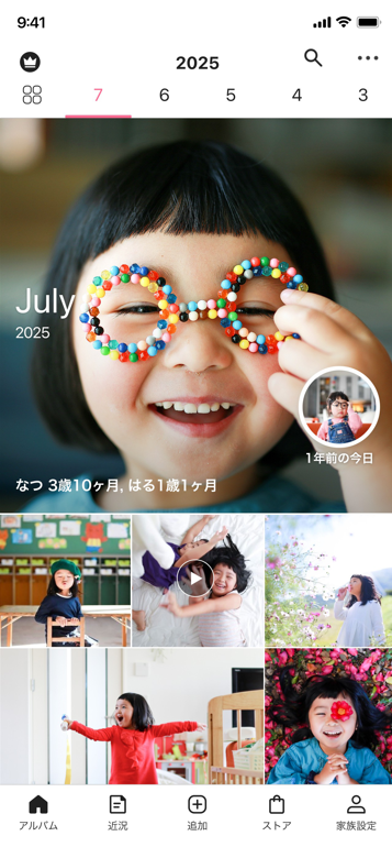 엄마, 아빠가 찍은 아이의 사진과 동영상을 조부모님이나 친척 등 초대한 가족만 공유할 수 있는 앱입니다. 사진과 동영상은 무료로 무제한 업로드가 가능하여 아이와의 일상을 부담 없이 공유할 수 있으며, 아이의 미소와 성장을 서로 댓글로 나누면서 가족 간에 사랑이 넘치는 커뮤니케이션이 생깁니다. 지금까지 많은 가족들이 이용해 주셨으며, 2025년 1월에는 이용자 수가 2,500만 명※을 돌파했습니다.