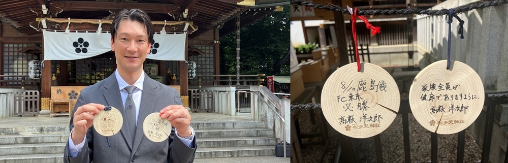 폐자재를 이용한 도쿄 도롱파 일러스트가 들어간 콜라보 에마를 배포합니다. 꼭 승리를 향한 마음을 적어 응원 기원을 부탁드립니다. 또한, 에마 걸이 장소에는 과거 FC 도쿄에도 소속되었던 다카하기 요지로 선수의 필승 기원 에마가 게시되어 있으니 그쪽도 주목해 주세요!