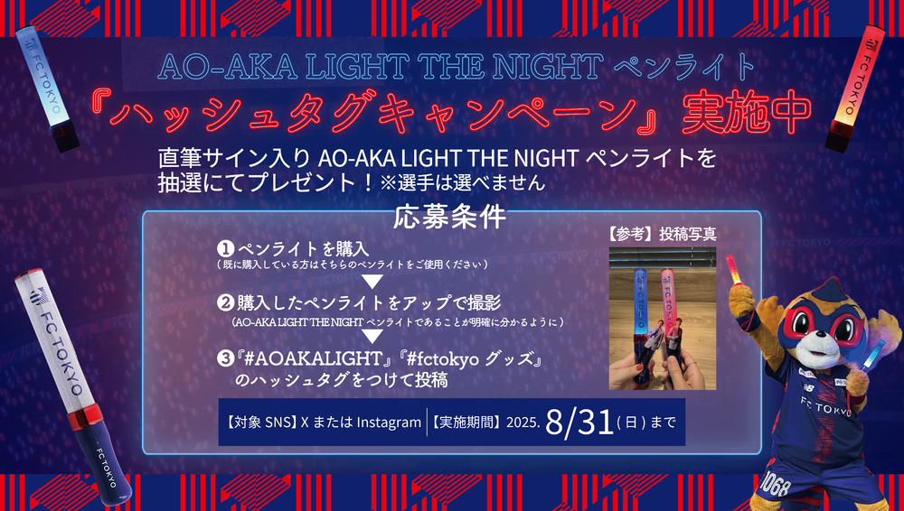 동제어 기능이 있는 펜라이트(AO-AKA LIGHT THE NIGHT 펜라이트)를 구입하시고, 'AO-AKA LIGHT THE NIGHT'로 스타디움을 뜨겁게 만들어 봅시다!