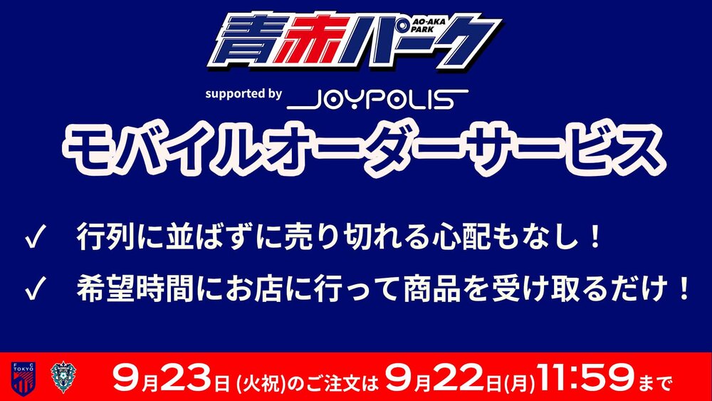아오아카 파크 supported by JOYPOLIS에서 스타디움·아레나용 솔루션 '우리콜'을 이용한 모바일 주문(사전 판매)을 실시합니다.