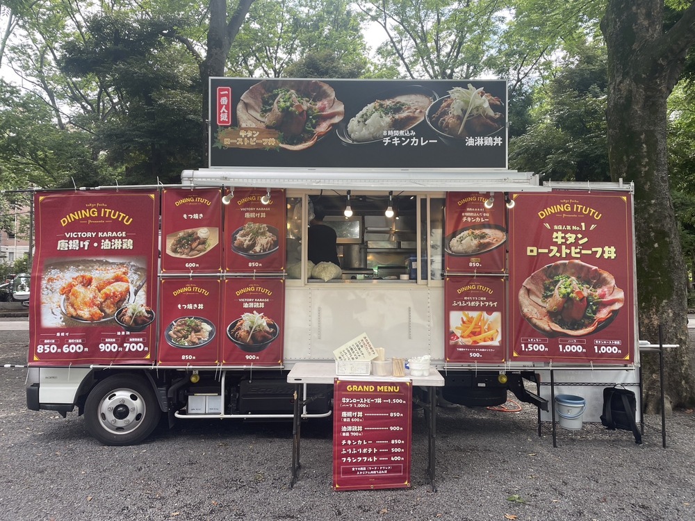 이 키친카는 후추역에서 도보 1분 거리에 있는 ‘다이닝 이츠츠’에서 출점합니다. 이번에는 가게의 인기 메뉴인 소 혀 스테이크를 준비했습니다!