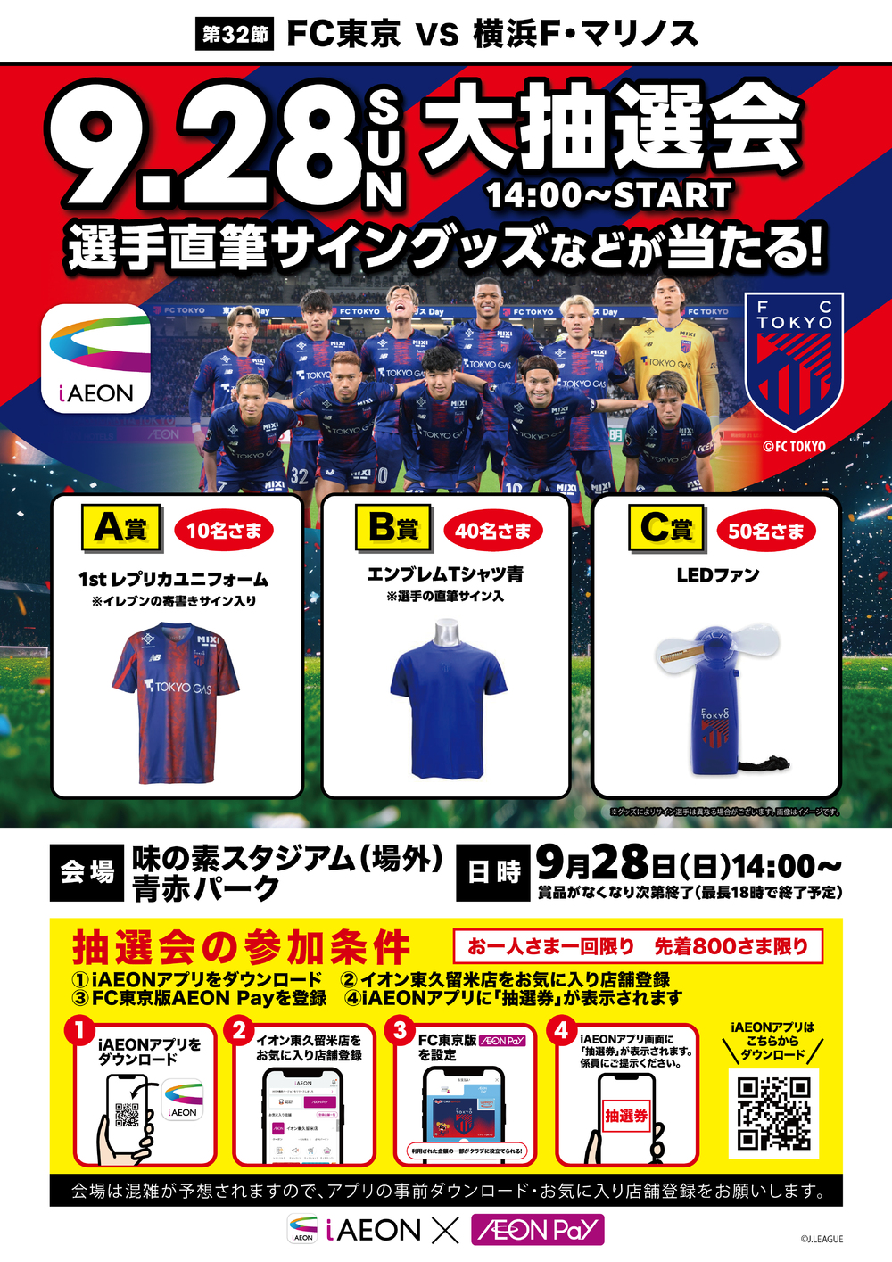 9월 28일(일) 2025 메이지 야스다 생명 J1 리그 제32라운드 vs 요코하마 F.마리노스(18:00 킥오프/아지노모토 스타디움)에서 공식 파트너인 이온 주식회사가 부스를 출점합니다.