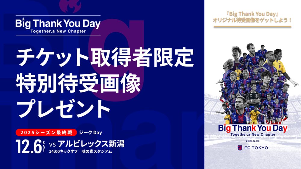 이번 경기에서 개최되는 ‘Big Thank You Day’를 기념하여, J리그 ID를 이용해 티켓을 구매한 분들만을 대상으로 특별 대기 화면 이미지를 선물로 드립니다!