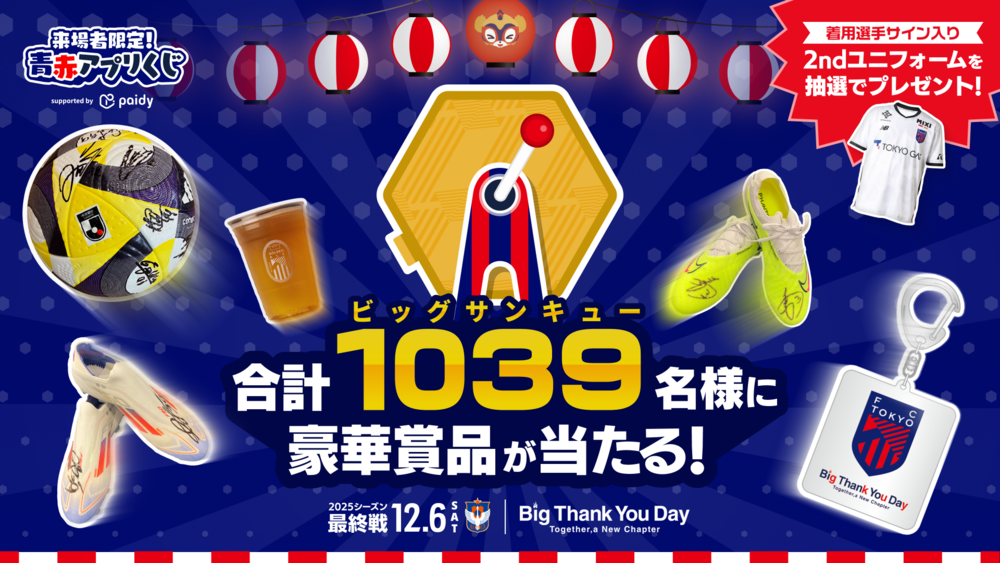 12월 6일(토) 2025 메이지 야스다 J1 리그 제38절 vs 알비렉스 니가타(14:00 킥오프/아지노모토 스타디움)에서 FC 도쿄 공식 앱을 활용한 방문자 한정 『청적 앱 복권 supported by Paidy』를 실시합니다.