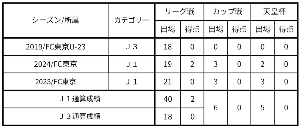 ※2019 시즌은 FC 도쿄 2종 등록 선수로서 플레이