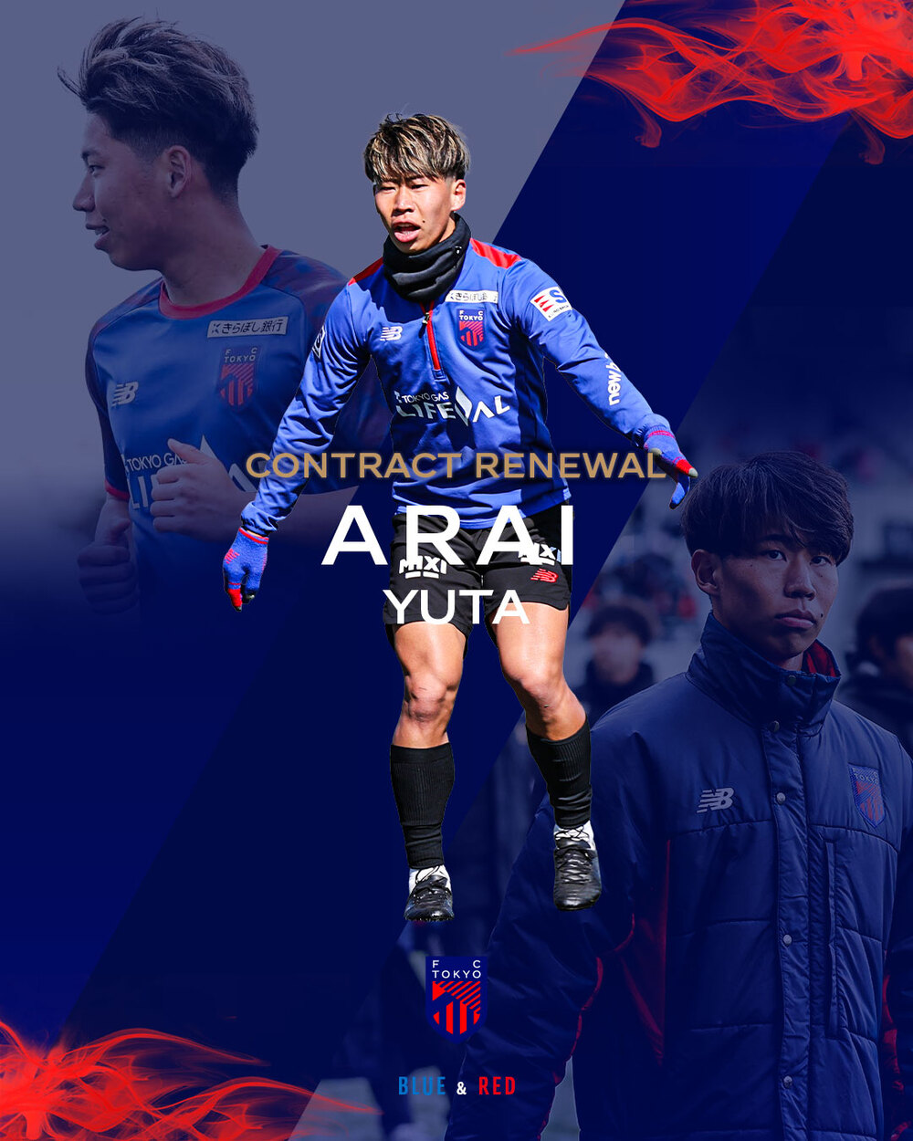 이번에 FC 도쿄에서는 아라이 유타 선수와 메이지 야스다 J1 백년 구상 리그 기간의 계약 갱신에 합의하였음을 알려드립니다.