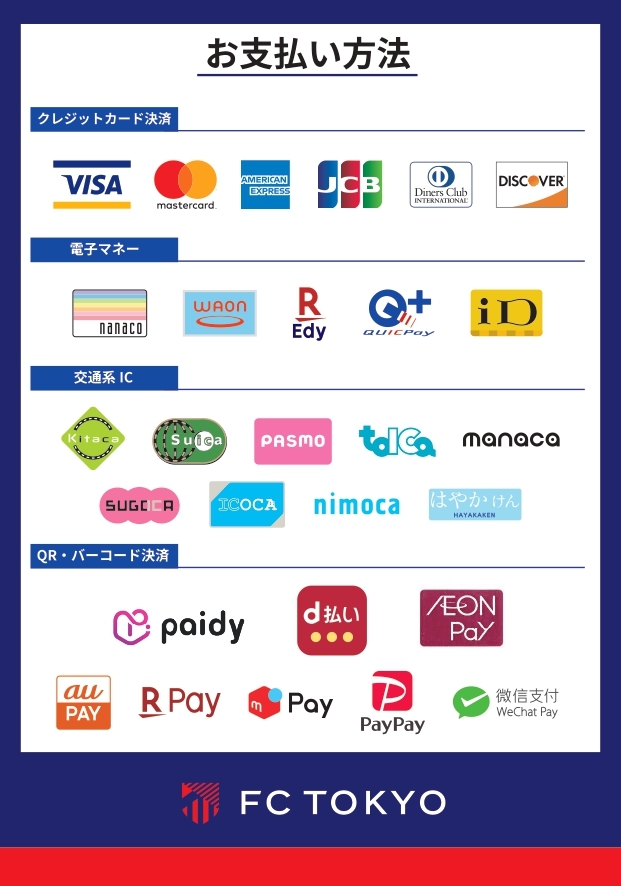 메이지 야스다 J1 백년 구상 리그부터, 홈 경기 개최 시에 굿즈 매장 및 가챠가챠 매장에서 완전 캐시리스 결제를 도입합니다. 각종 신용카드, 전자머니, QR 코드를 이용하실 수 있습니다.