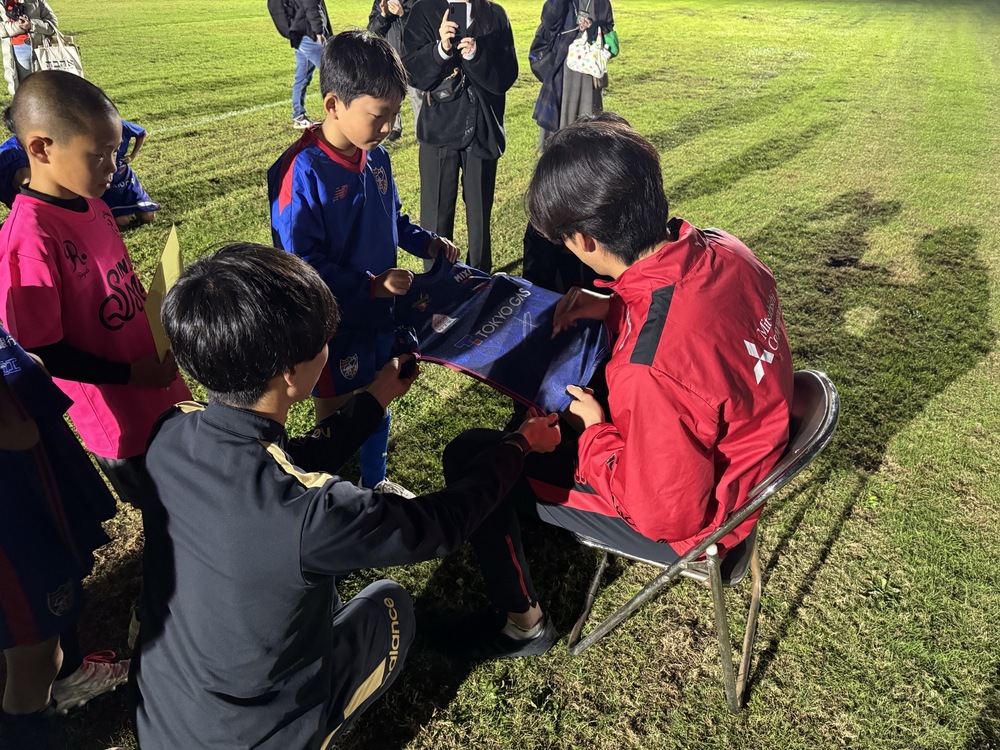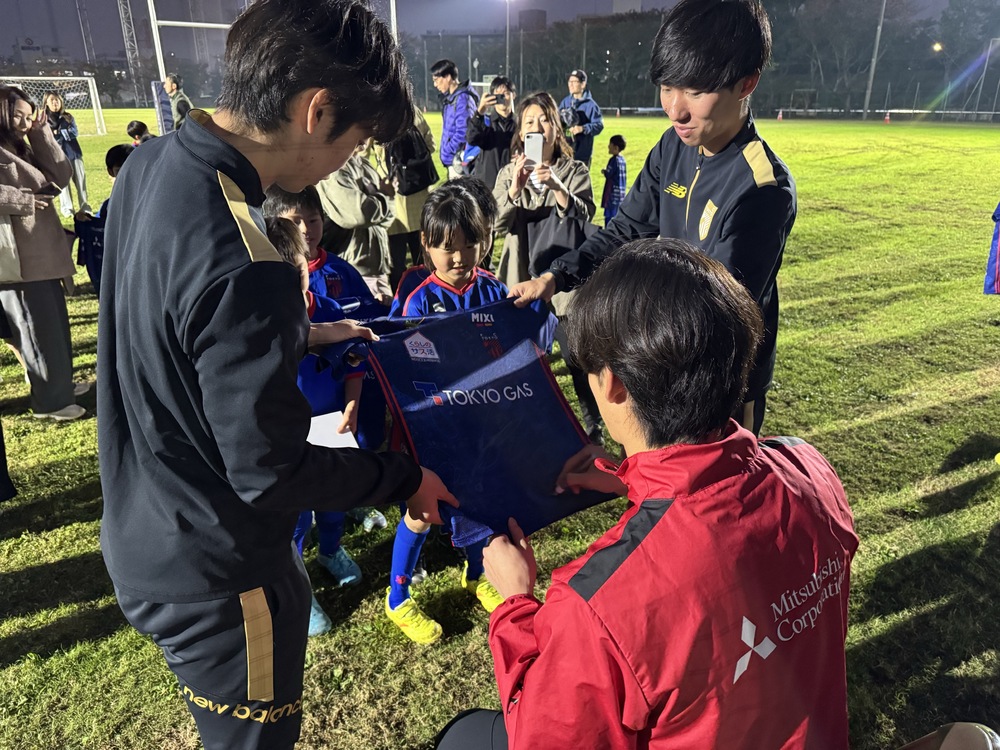 마지막으로 고바야시 마사타카 선수로부터 "지금 FC 도쿄 엠블럼을 달고 있는 것과 연습 환경 등에 감사하며 연습에 임해 주세요!"라는 메시지를 스쿨생에게 전했습니다!