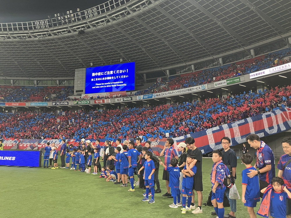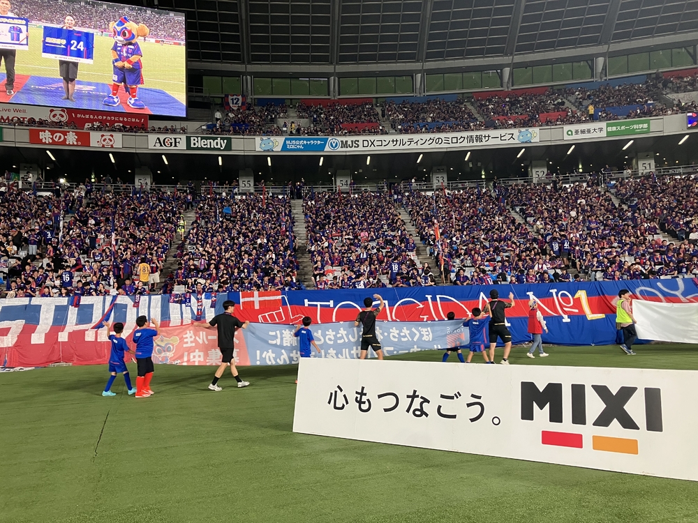 이번에도 FC 도쿄 축구·풋살 스쿨생 모집 배너를 들고 피치를 한 바퀴 돌았습니다!