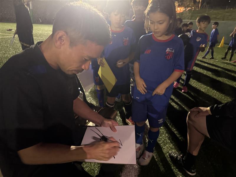 그 후에는 스쿨생들이 준비해 온 FC 도쿄 굿즈, 이탈리아 시절 유니폼, 일본 대표 유니폼 등에 장유 선수가 한 명 한 명 정성껏 사인을 했고, 스쿨생들은 긴장하면서도 감사한 마음을 눈을 마주치며 확실히 전했습니다!