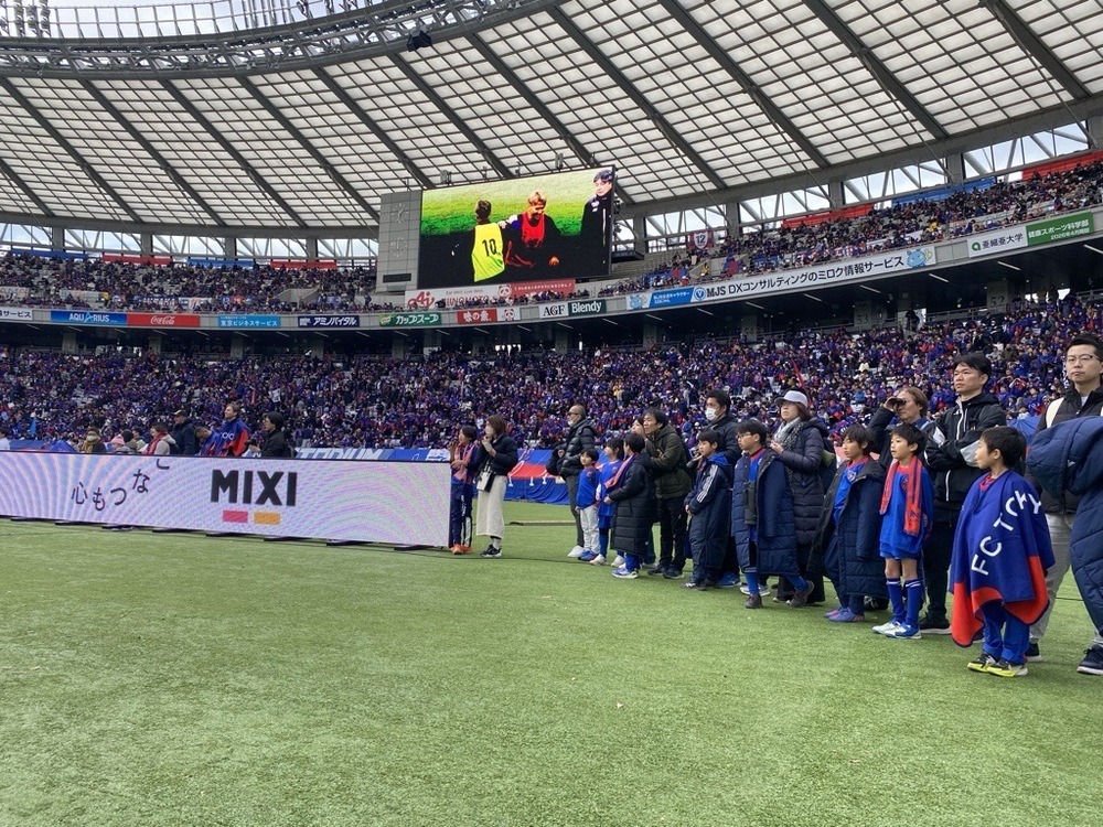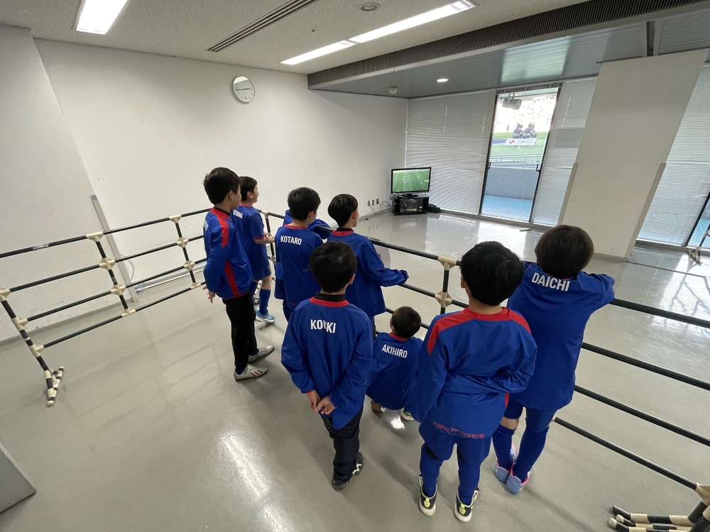 워밍업 견학 중에는 추위도 잊을 정도로 스쿨생들은 선수들에게 뜨거운 응원을 보냈으며, 피치 레벨에서 보는 아지노모토 스타디움의 경치와 경기장 분위기도 즐겼습니다.