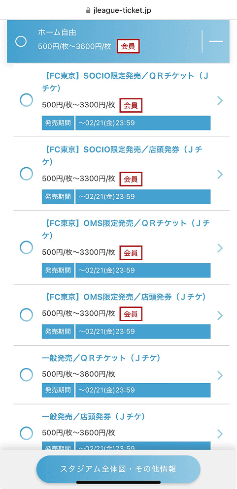 ※ SOCIO・OFFICIAL MEMBERSHIP 회원은 회원번호(원터치패스 ID)와 J리그 ID를 연동하시면 우대 가격으로 예매권을 구매하실 수 있습니다.