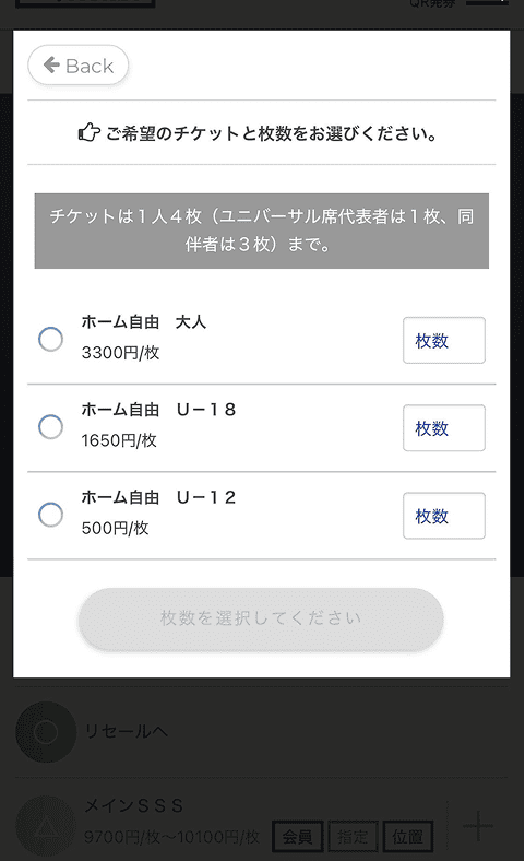 구매 희망 매수를 선택하고 【좌석을 확정하기】를 누르세요