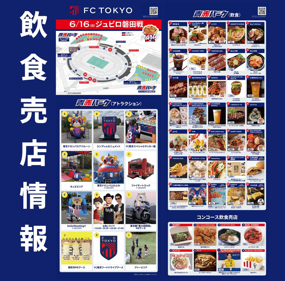 6月16日(日)ジュビロ磐田戦の青赤パーク(場外)、出張!!青赤パーク、スタジアム内コンコース(場内)売店にて販売する飲食情報をお知らせいたします。