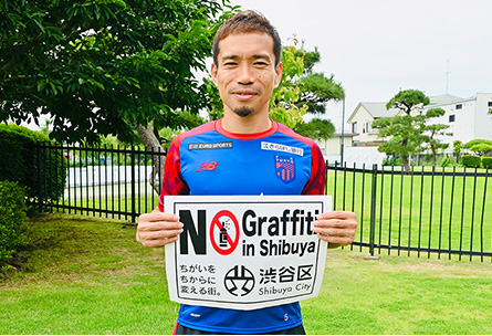 Estamos colaborando com a Associação de Promoção do Centro Comercial de Shibuya e o Distrito de Shibuya na transmissão de anúncios de jogadores como uma campanha de conscientização para prevenir o descarte de lixo e pichações.