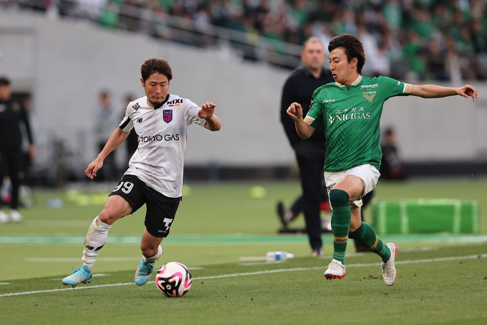 No primeiro tempo, que começou com alta tensão, quem criou a primeira chance foi Tóquio. Aos 11 minutos, pressionando alto no campo adversário, Teruhito NAKAGAWA interceptou a bola perto da área. Tsuyoshi OGASHIWA recebeu o passe e chutou com o pé esquerdo dentro da área, mas a bola foi bloqueada pelo adversário. Aos 15 minutos, outra chance de chute surgiu. Kei KOIZUMI pegou a segunda bola, Kashif BANGNAGANDE fez o passe final. Embora não tenha conectado, Teruhito NAKAGAWA pegou a bola solta e finalizou com o pé direito. O chute acertou o gol, mas foi defendido pelo goleiro no centro do gol.