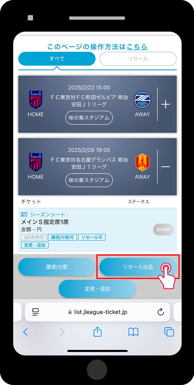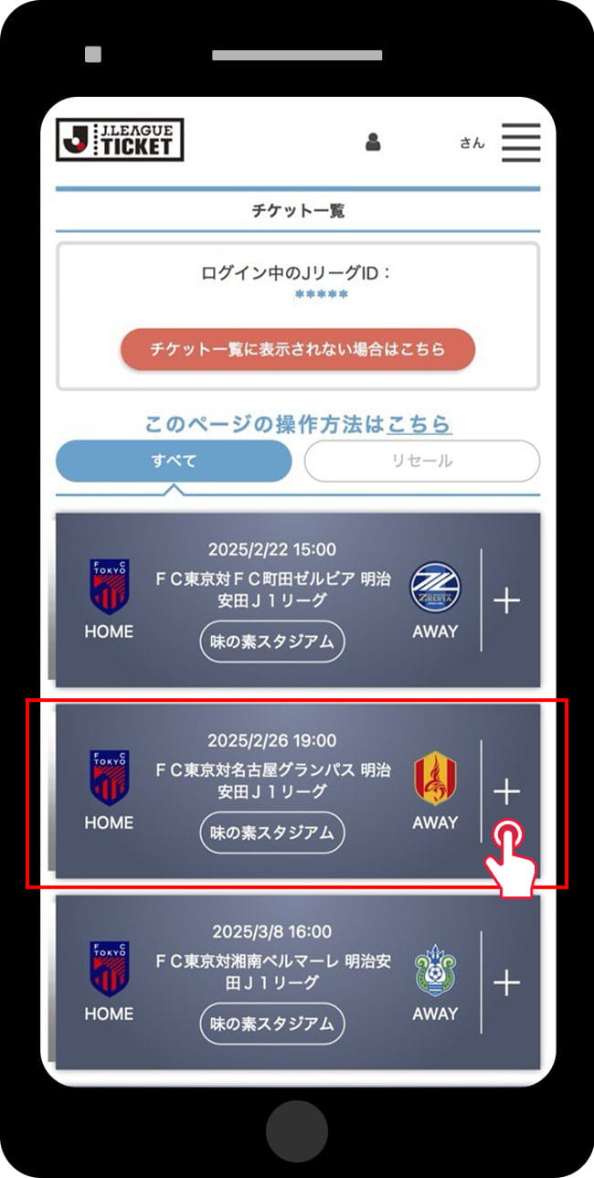 A revenda e a transferência de ingressos podem ser feitas pelo Ticket FC Tokyo. Para saber como listar seus ingressos na revenda oficial e como transferi-los para conhecidos, consulte o guia de uso abaixo.