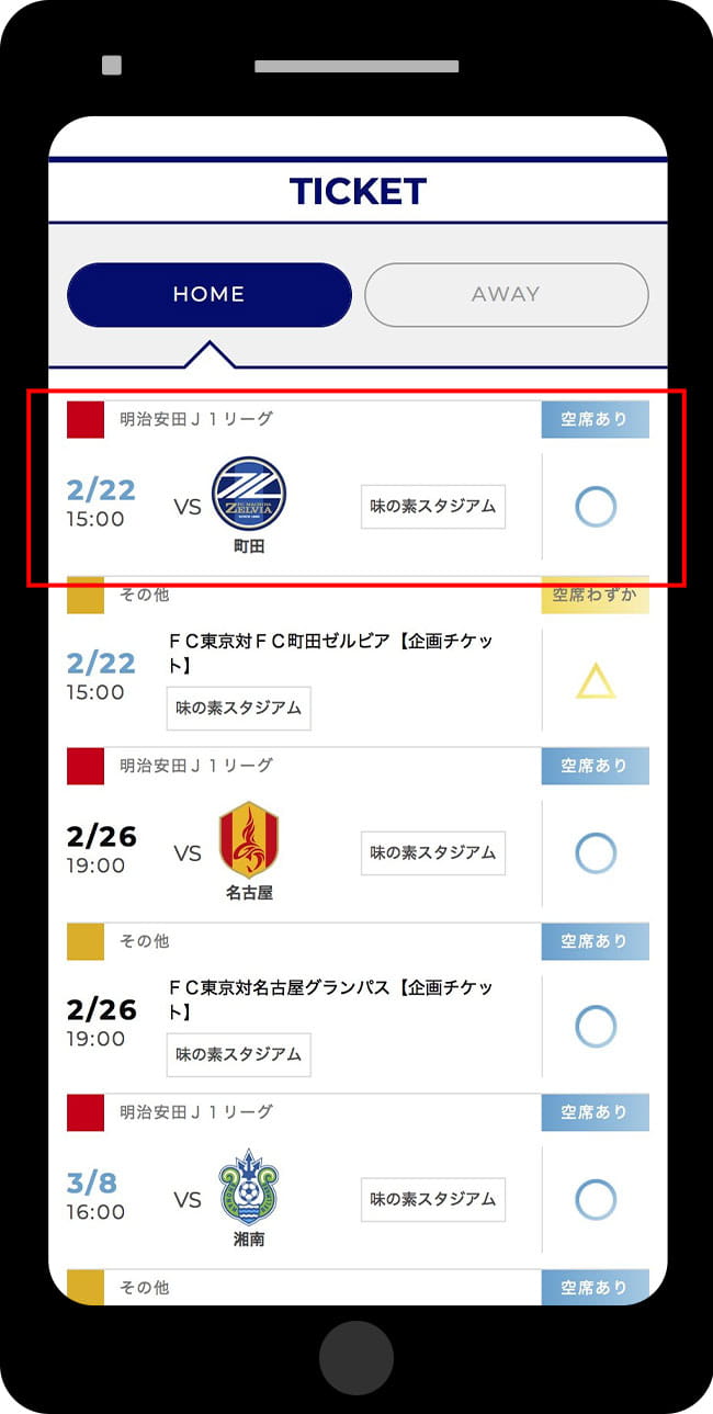 Acesse o Ticket FC Tokyo (J.League Ticket) e selecione a partida que deseja assistir.