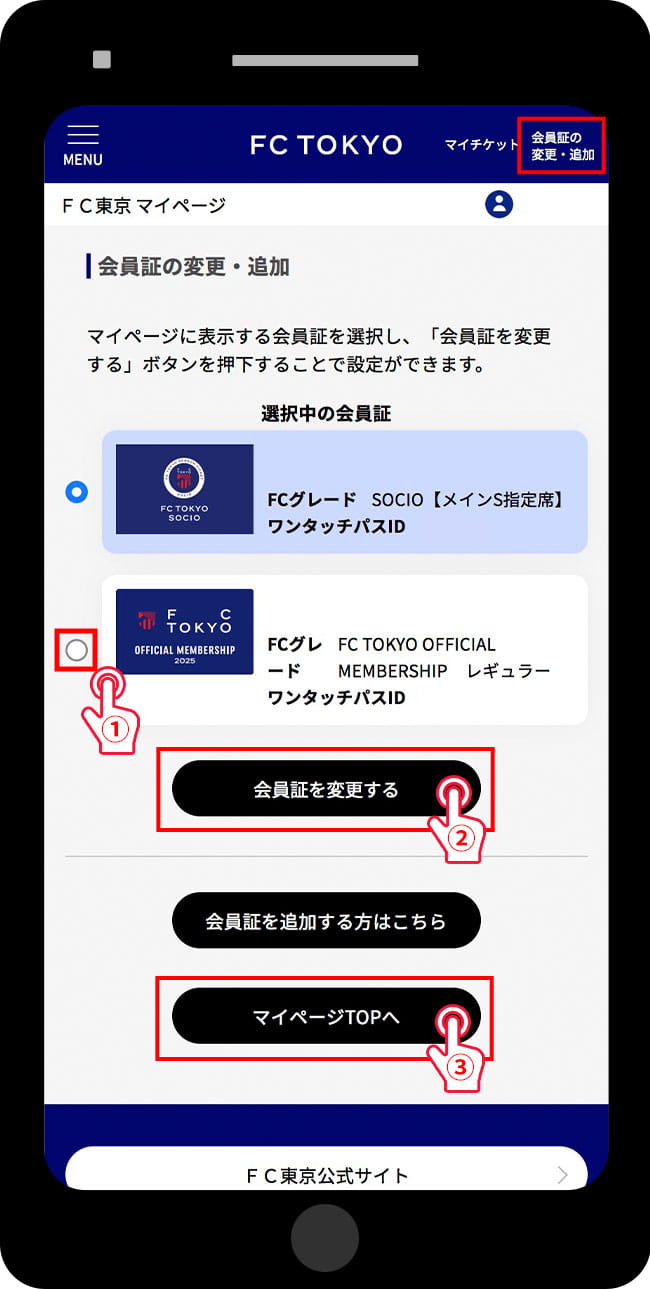 Selecione o cartão de membro que deseja exibir e escolha "Alterar cartão de membro"