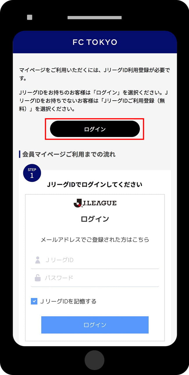 Por favor, faça login com o J.League ID que você usou ao se inscrever como SOCIO ou OFFICIAL MEMBERSHIP.
