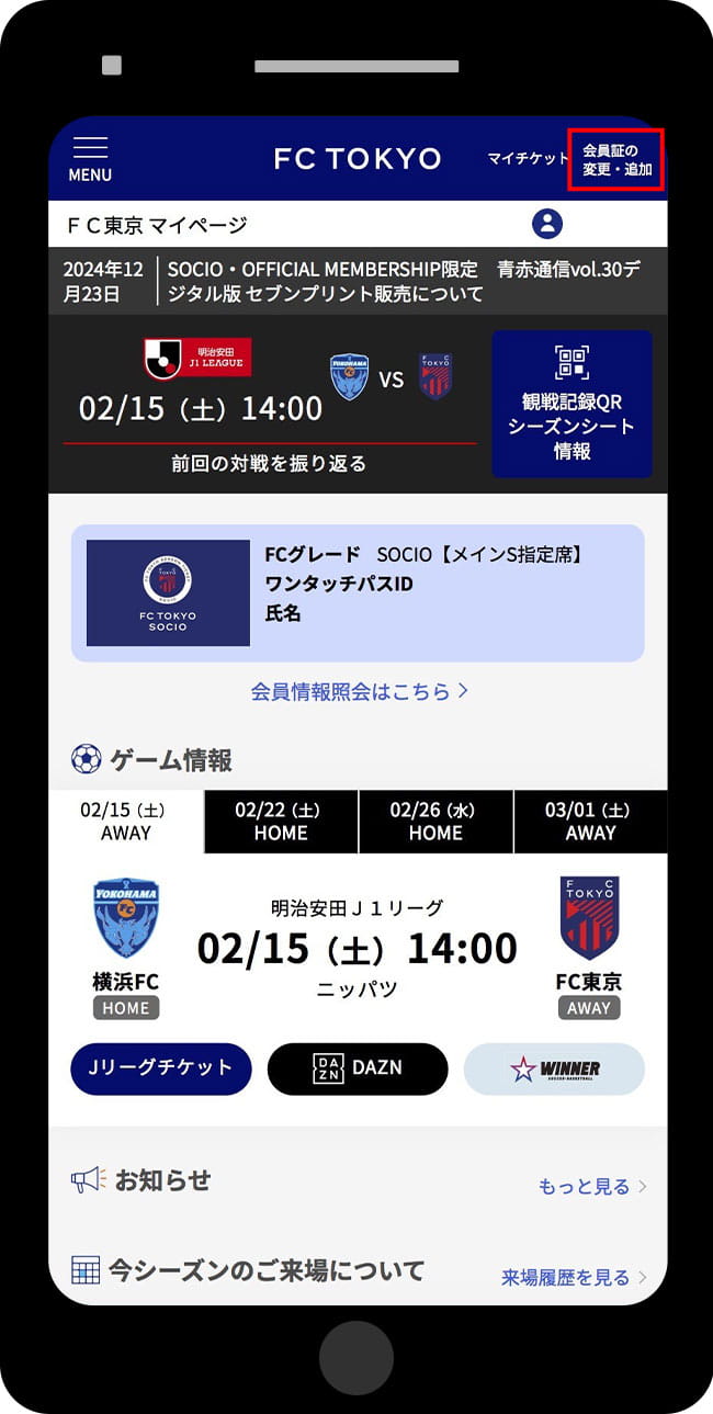 - Para utilizar este serviço, é necessário vincular o ID da J.League ao ID One Touch Pass (número SOCIO).