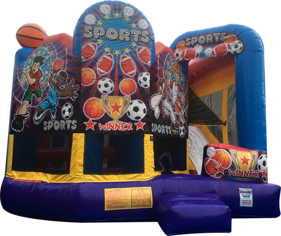 É um grande playground inflável com cerca de 5 metros de altura. Aparecem brinquedos infláveis inspirados em vários esportes!