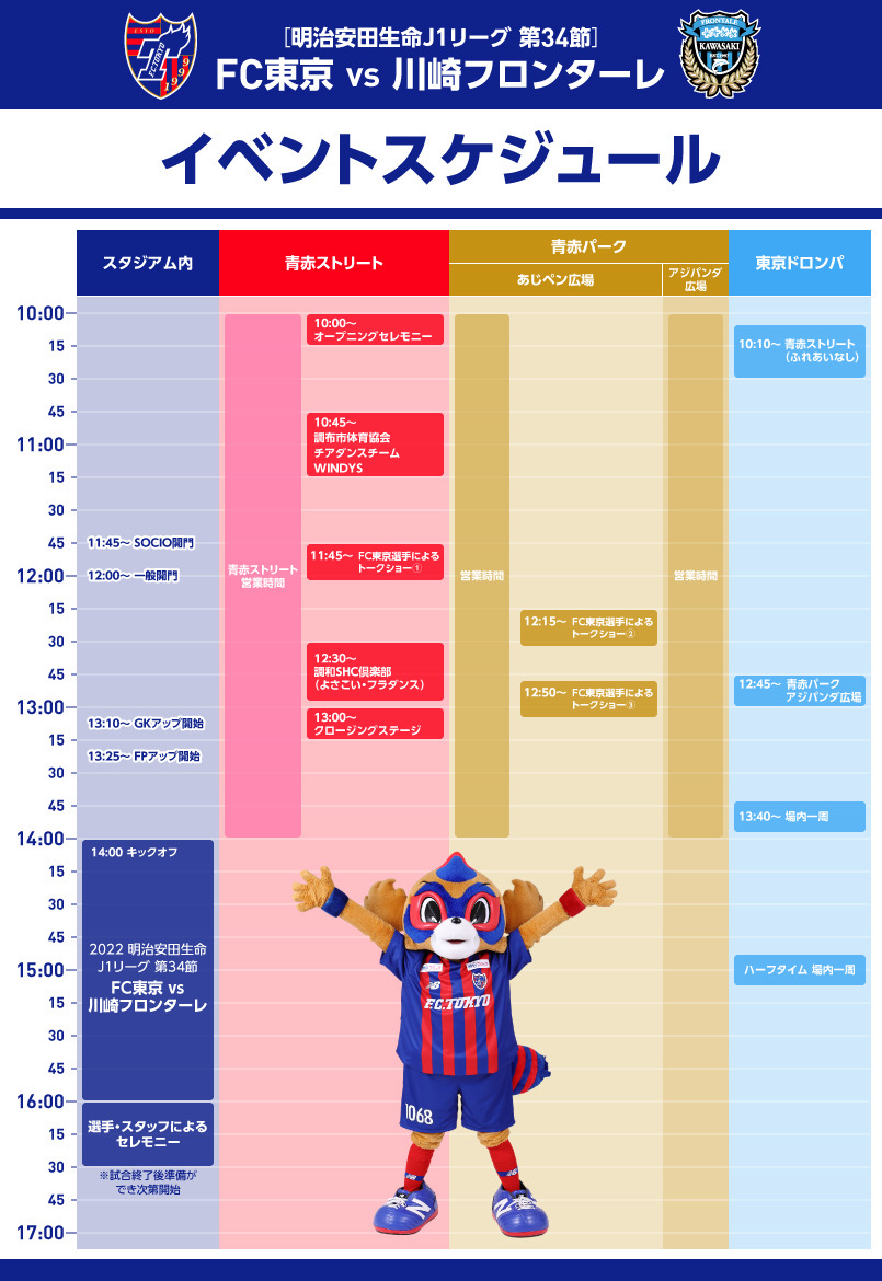 5 de novembro (Sáb) 2022 Meiji Yasuda Life Insurance Company J1 League Rodada 34 vs Kawasaki Frontale (Início às 14:00 / Ajinomoto Stadium) realizaremos o AO-AKA PARK!