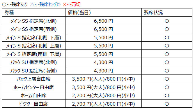 ※Os assentos designados para SB de defesa lateral e SG de casa são vendidos apenas como ingressos anuais. Não haverá venda de ingressos antecipados ou no dia do evento.