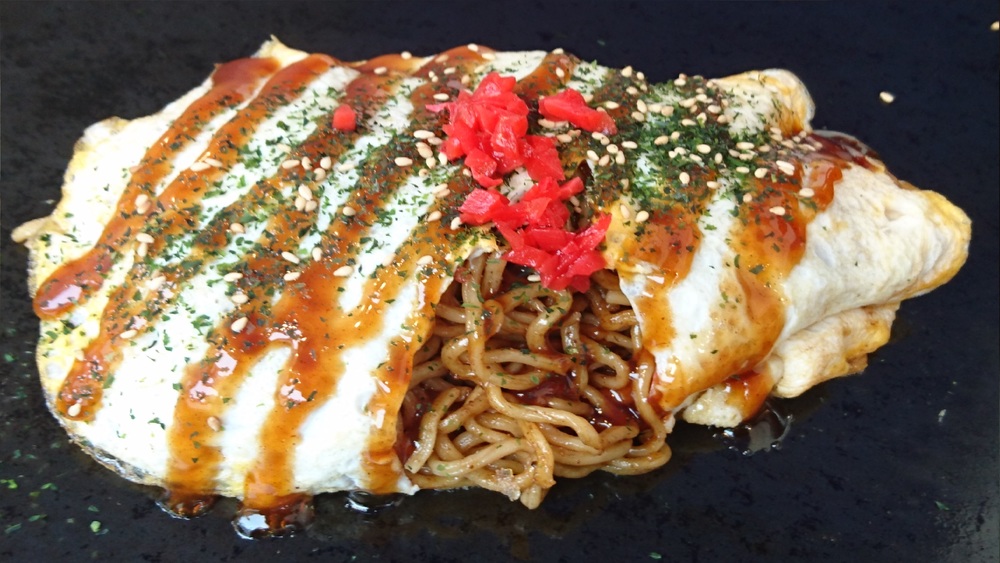 Omu-soba macio e cremoso, feito com yakisoba recém-preparado envolto em um ovo. É o produto do qual o proprietário se orgulha!