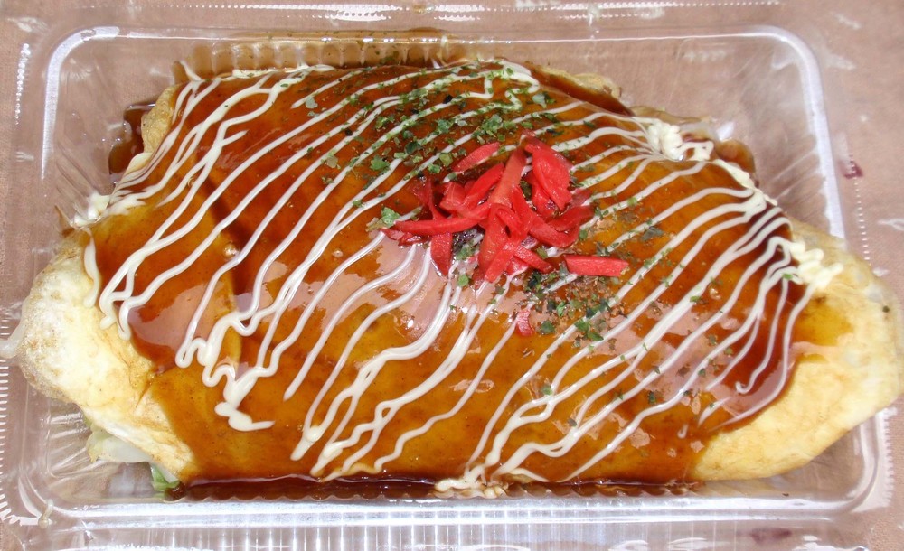 É um okonomiyaki jumbo. Além do volume, é muito delicioso. Por favor, experimente!!