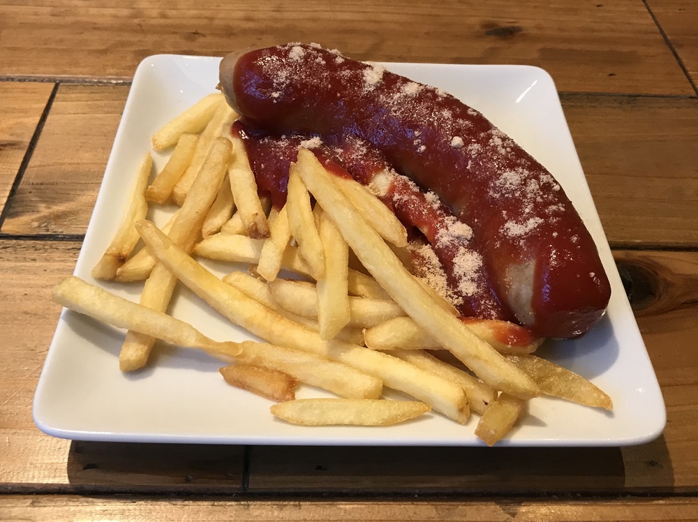 Um prato popular da Alemanha, o país campeão do último torneio. É um prato que combina salsichas com ketchup e curry em pó!