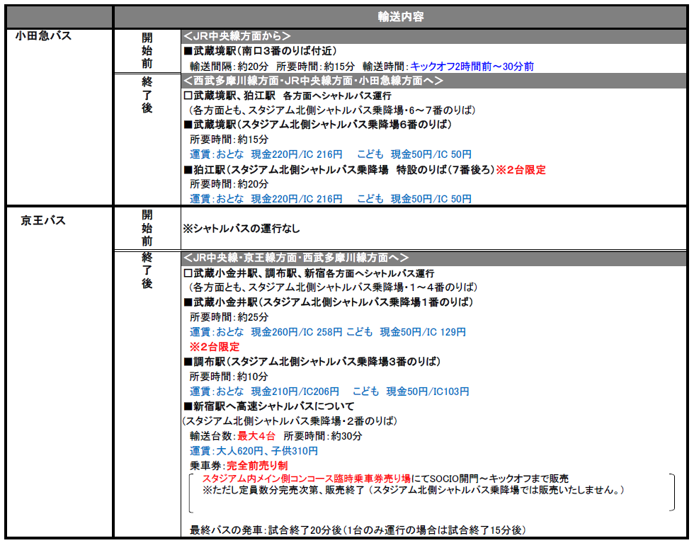 15/8 (Qua) 2018 Meiji Yasuda Life Insurance Company J1 League 22ª rodada vs Kashiwa Reysol (19:00 kickoff / Ajinomoto Stadium) informações sobre o serviço de ônibus shuttle e ônibus de linha que serão operados.