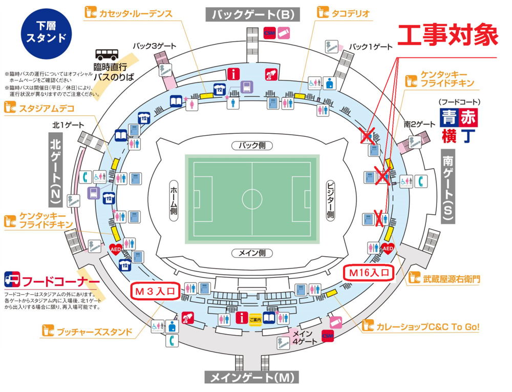 No jogo contra o Cerezo Osaka em 20/10 (Sáb), parte dos banheiros internos do Ajinomoto Stadium (lado da arquibancada sul) estará indisponível devido a obras de reforma. Além disso, banheiros temporários serão instalados fora do estádio, por favor, utilize-os. Pedimos desculpas pelo inconveniente e agradecemos a compreensão e cooperação de todos.