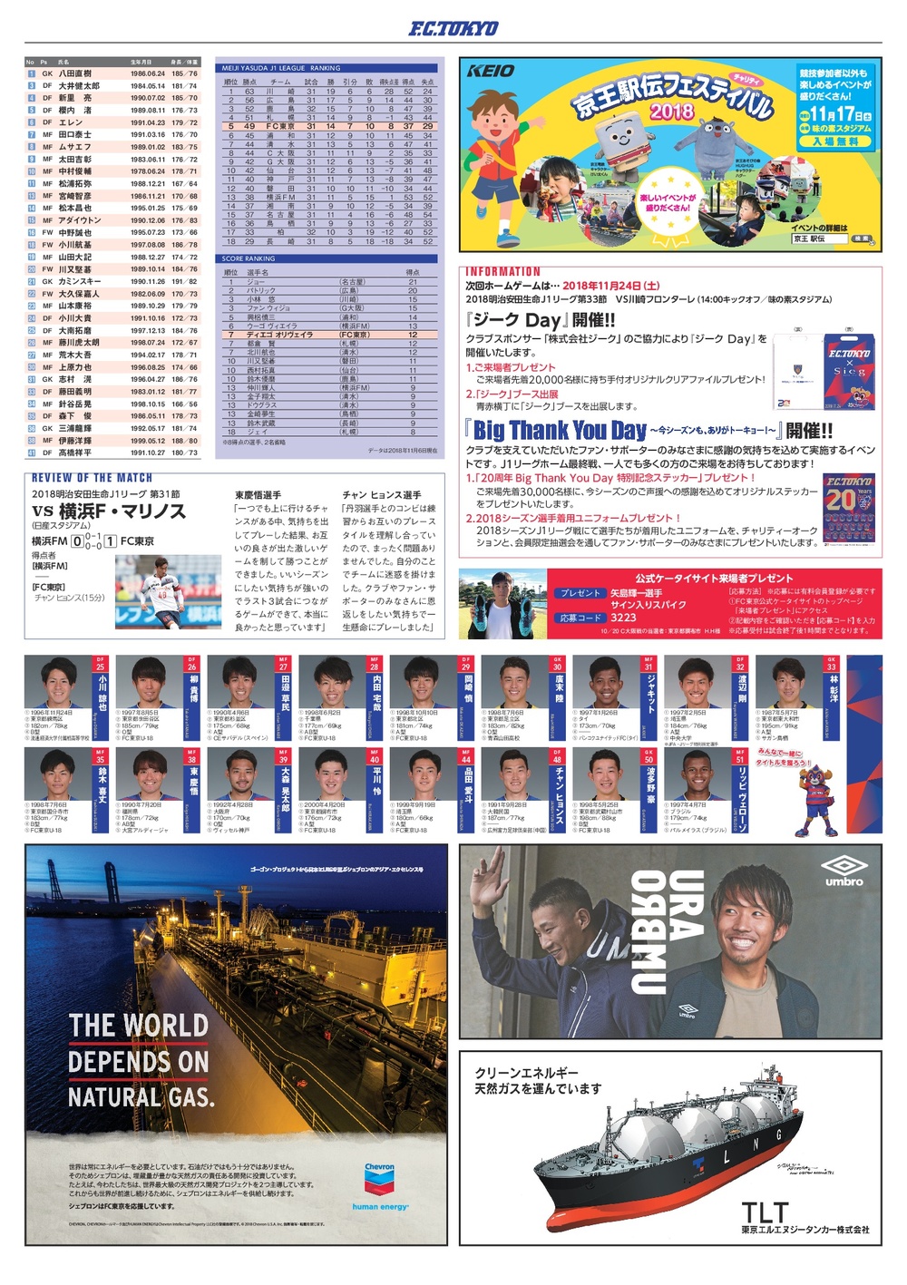 10/11(Sáb)2018 Meiji Yasuda Life Insurance Company J1 League 32ª rodada vs Júbilo Iwata (14:00 kickoff / Ajinomoto Stadium) sobre o programa oficial do dia da partida, informamos conforme abaixo.