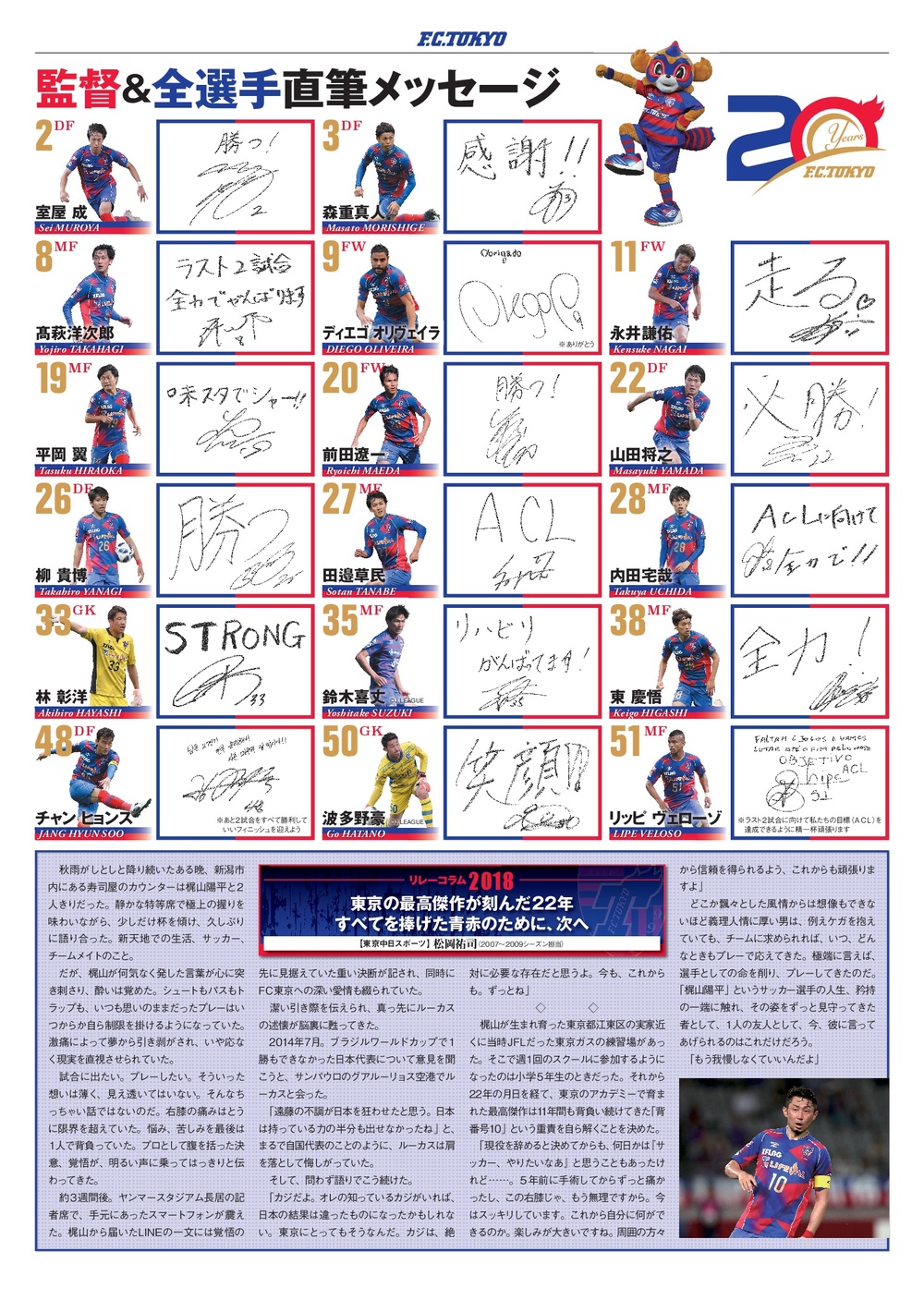 □Programa Oficial do Dia da Partida 2018 Nº 20 (Capa: Sei MUROYA, Kosuke OTA)