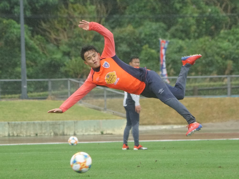 Sob forte chuva e vento, os jogadores se dedicaram ativamente ao treino.