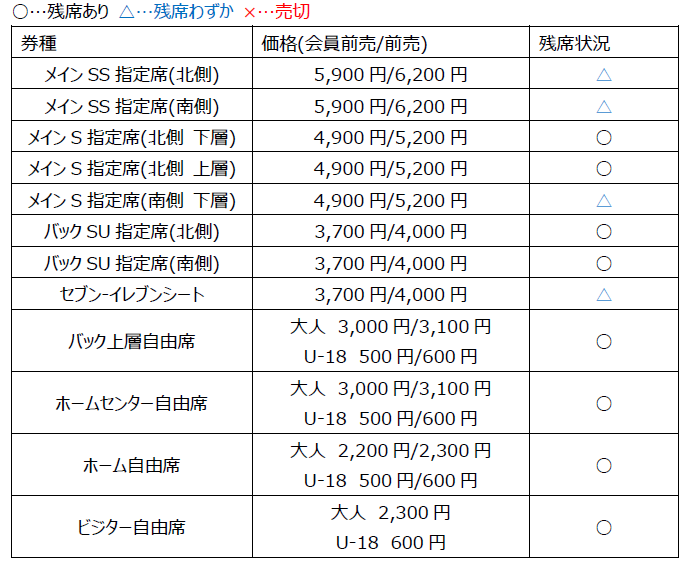 ※Os assentos designados para SB de defesa lateral e SG de casa são vendidos apenas como ingressos anuais. Não haverá venda de ingressos antecipados ou no dia do evento.