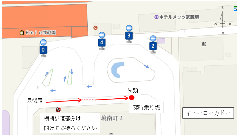 Devido à conclusão das obras de reforma da rotatória da saída sul da Estação Musashisakai, o ponto de embarque do ônibus direto para o Ajinomoto Stadium na saída sul da Estação Musashisakai será alterado.
