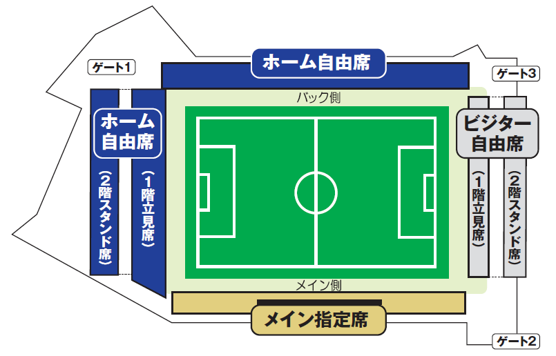 ※Não é permitido torcer pelo time visitante na área de apoio do FC Tokyo (lado da arquibancada designada para o time mandante, assentos livres para o time mandante).