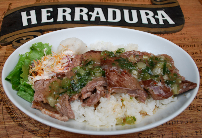 ・Bife de carne bovina com arroz/PINOS (usando cebolinha de Senju)