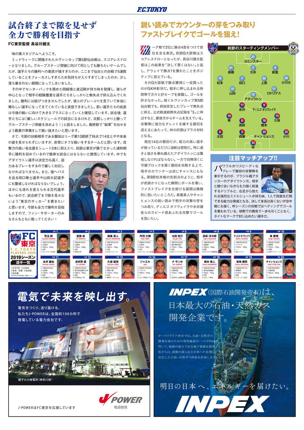 12/5 (Dom) 2019 Meiji Yasuda Life Insurance Company J1 League Rodada 11 vs Júbilo Iwata (Início às 14:00 / Ajinomoto Stadium) sobre o programa oficial do dia do jogo, informamos conforme abaixo.