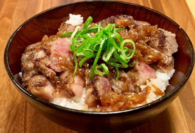 ・Tigela de bife com molho de soja e alho (900 ienes) / Aventura