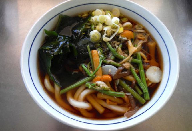 ・Udon com vegetais selvagens (700 ienes) / Refeição rápida