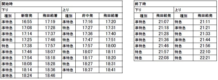 Sentido subida… 9 trens expressos e semi-expressos das 17:16 às 18:37 saindo de Fuchu